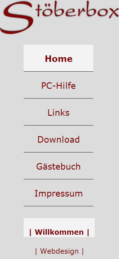 Hier das Beispiel der Stöberbox bei einer üblichen Tablet–PC Auflösung (...klicken Sie die Bilder zur Vergrößerung an):